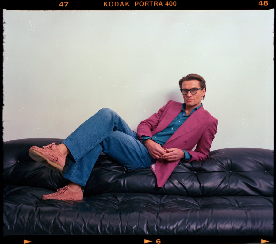 This outfit explores the balance between tailoring authority and off-duty ease. The jacket provides structure through shoulder and silhouette, while denim and suede footwear deliberately soften the language. It represents how tailoring can exist outside traditional formal rules.